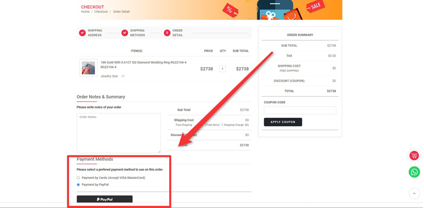 Step 1th. Customers selet the favorite products and go to checkout No.3 page, choose the payment method they like.