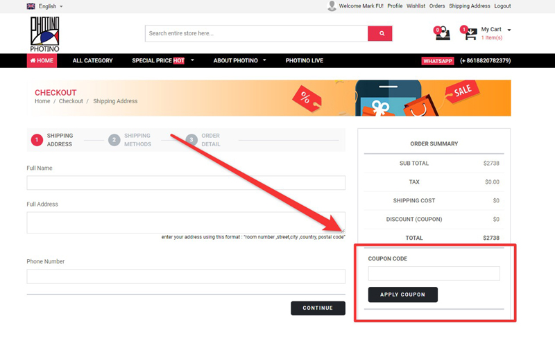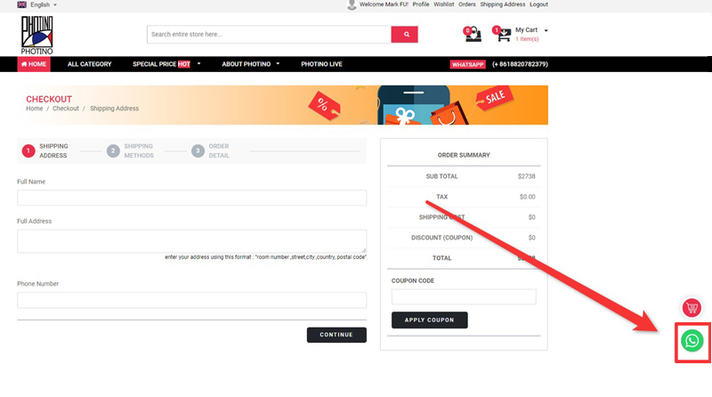 Step 2th. Contact us by whatsapp (click the whatsapp button), then chat with our staff online, and let us know how much your order total amount, our staff will offer to you a coupon code. You can use this code to have discount on your new order.
