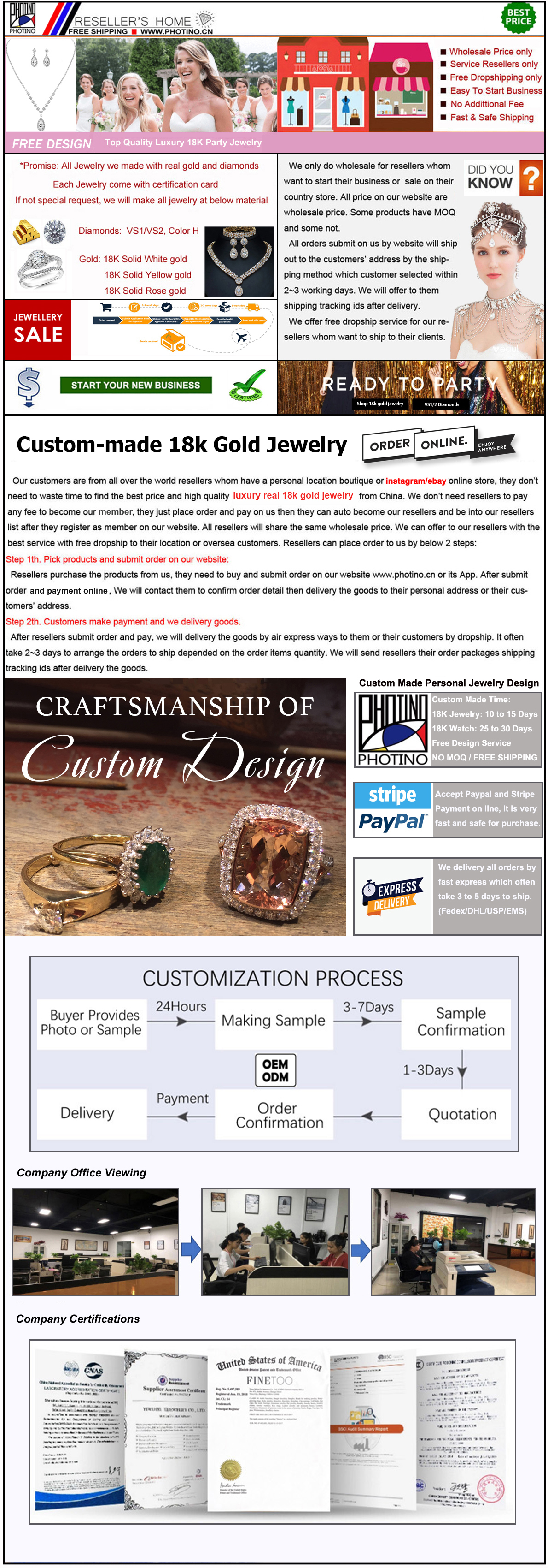 Jewelry factory wholesaler has served thousands of jewelers with wholesale all world jewelry collection and the advanced jewelry customization to create countless one-of-a-kind exceptional jewelry pieces. As one of Photino oldest jewelry manufacturers, we are pride in delivering four decades of distinctive designs, to details and quality consistency. Our focus is on crafting your exceptional experience with bespoke jewelry design that is affordable and personalized for our business partners. With every exquisite jewelry that we offer, a distinct difference can be found creativity & excellence.